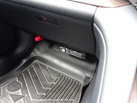 グローブボックス下に吊り下げ固定しています